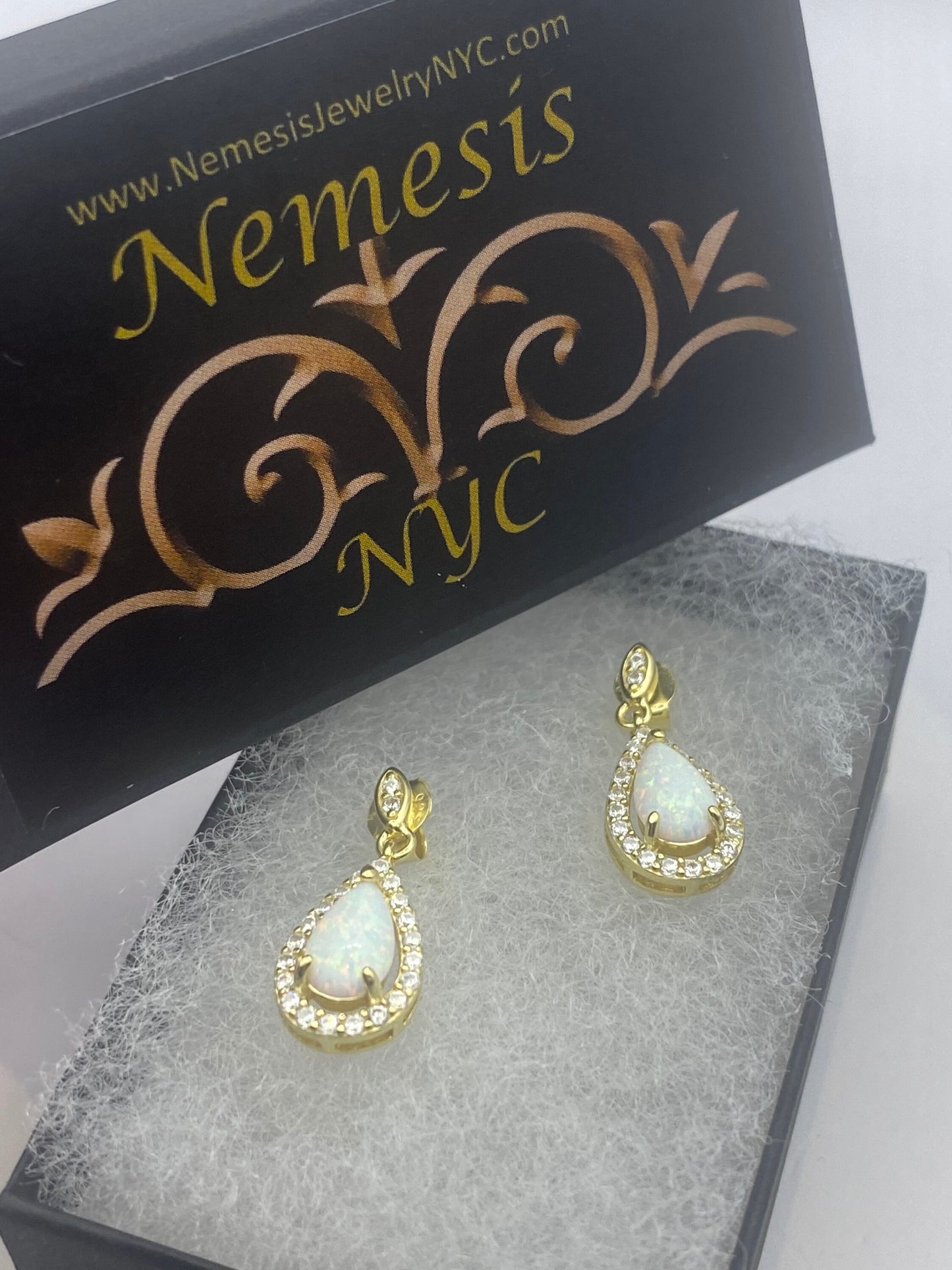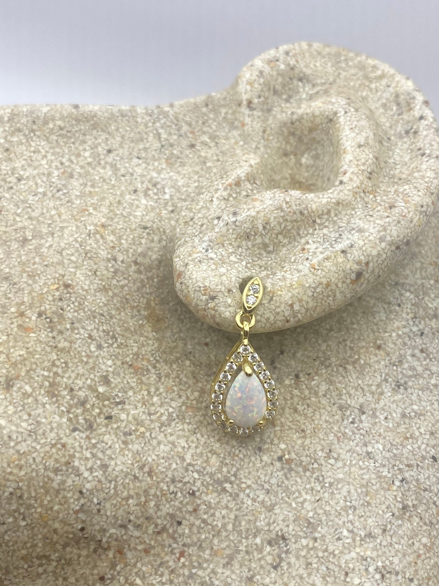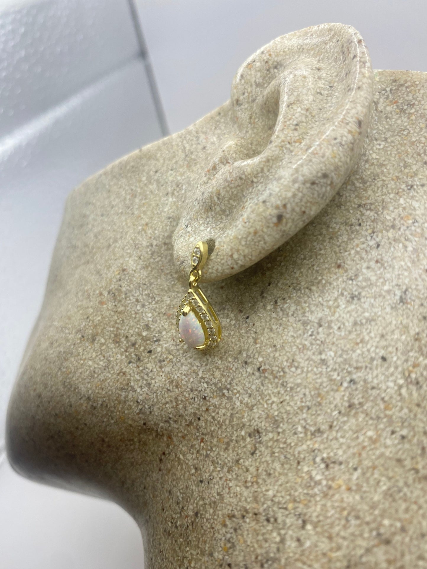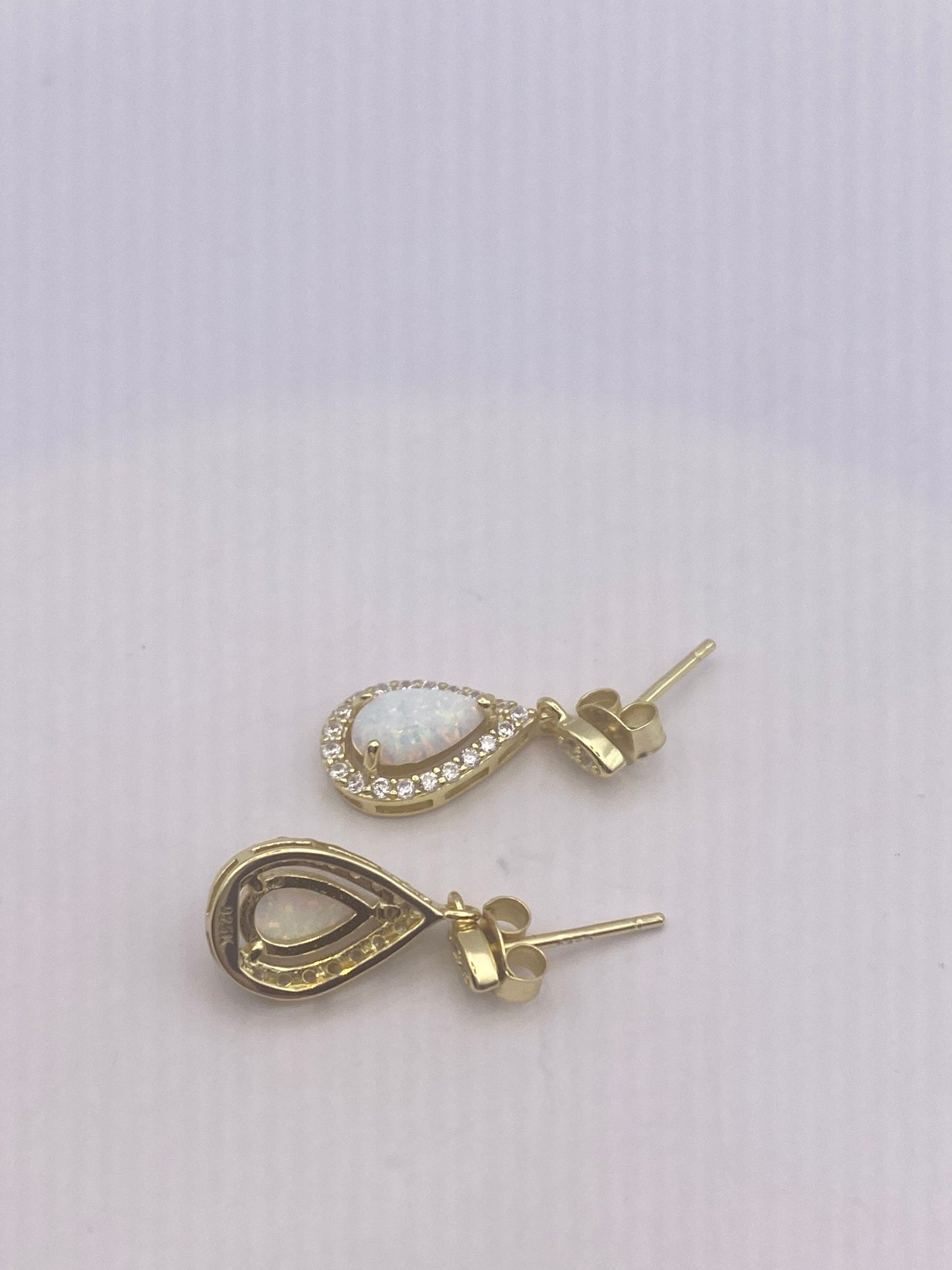 Vintage White Opal Earrings white sapphire golden 925 Sterling Silver