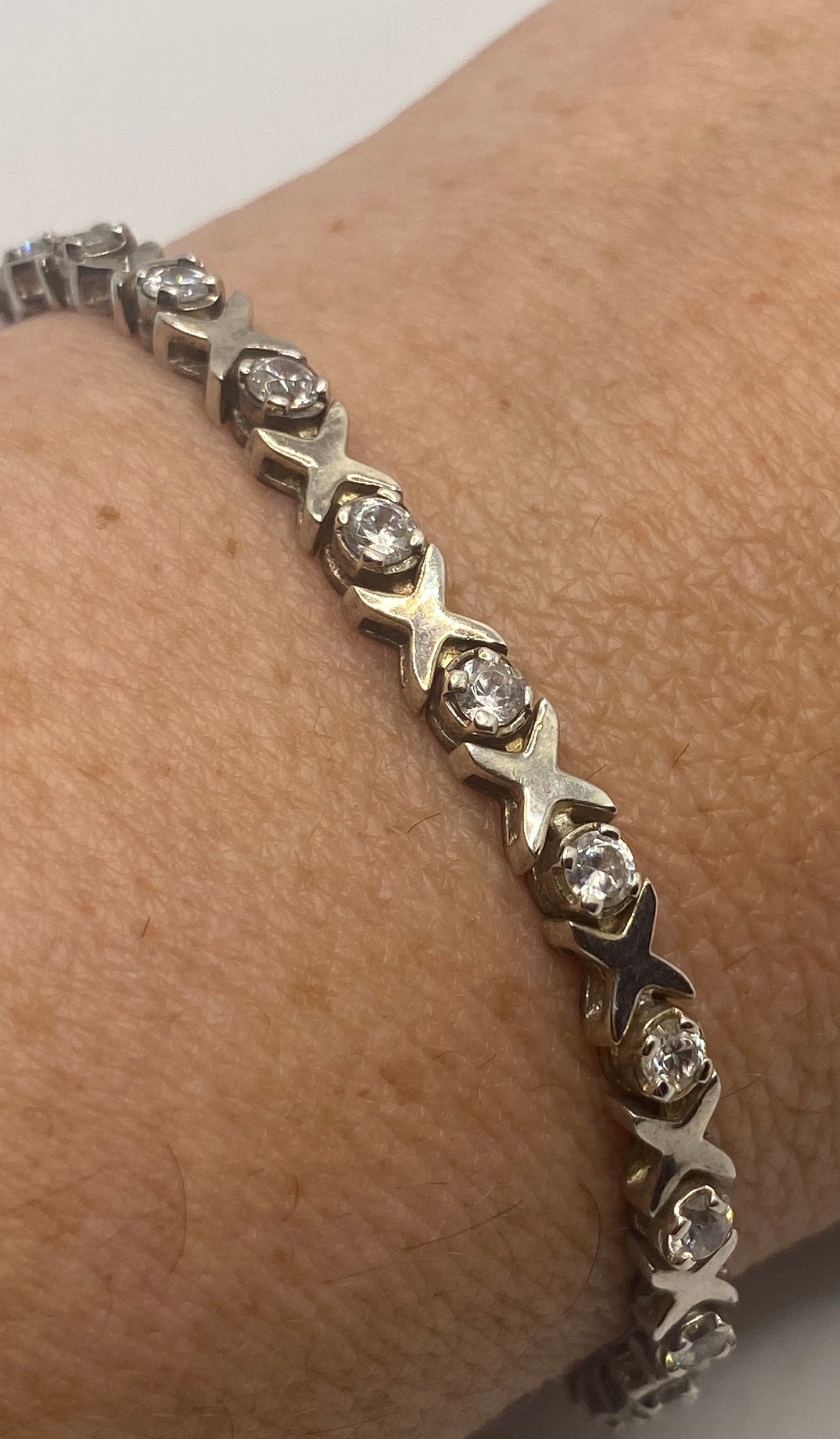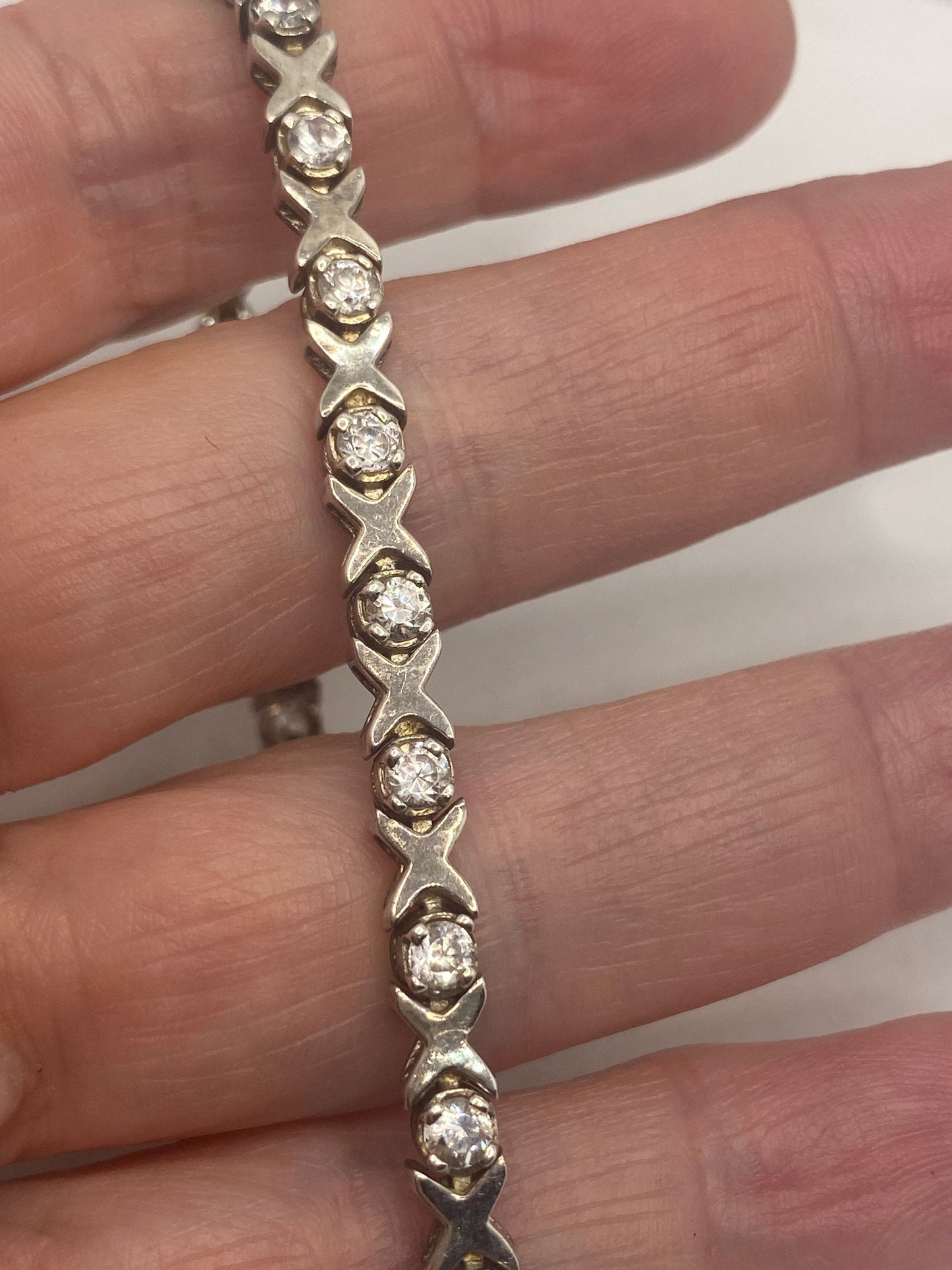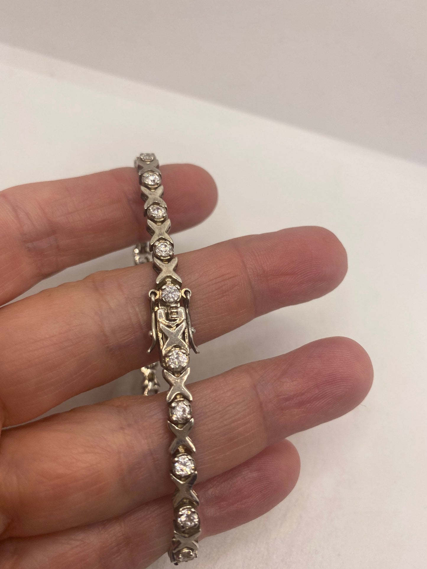 Vintage White Sapphire Bracelet 925 Sterling Silver Tennis