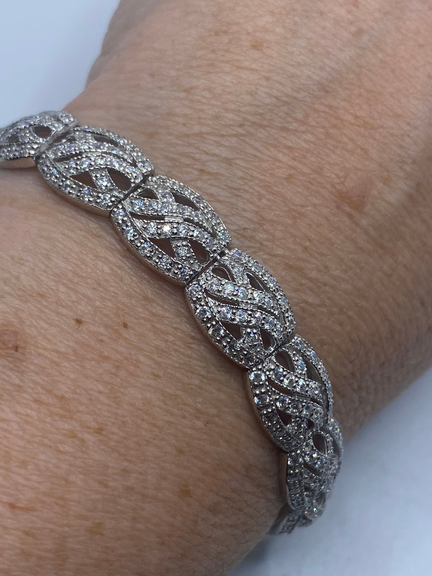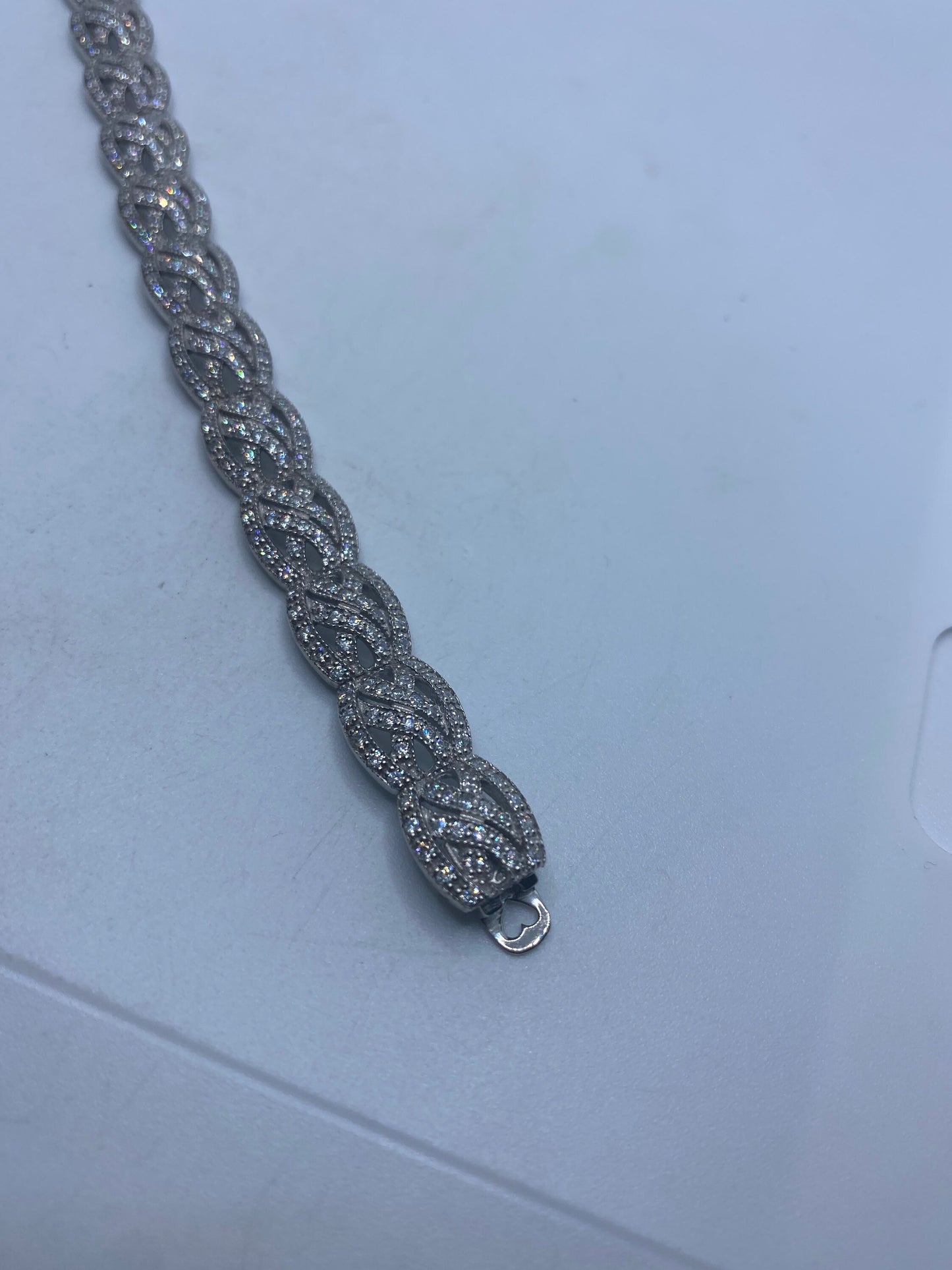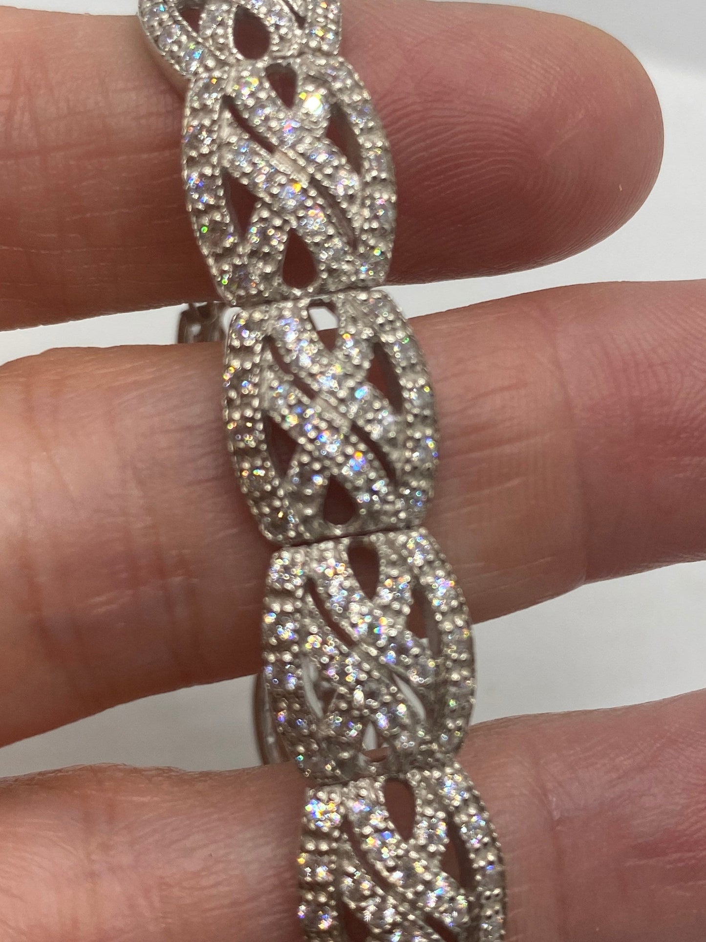 Vintage White Sapphires 925 Sterling Silver Deco Tennis Bracelet