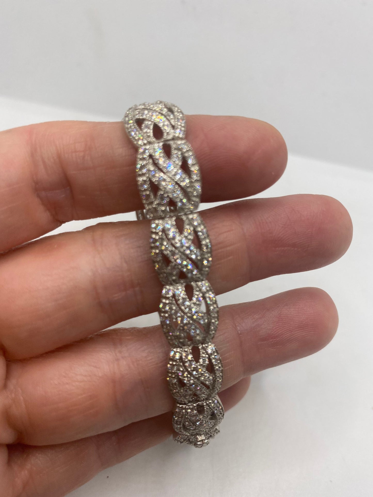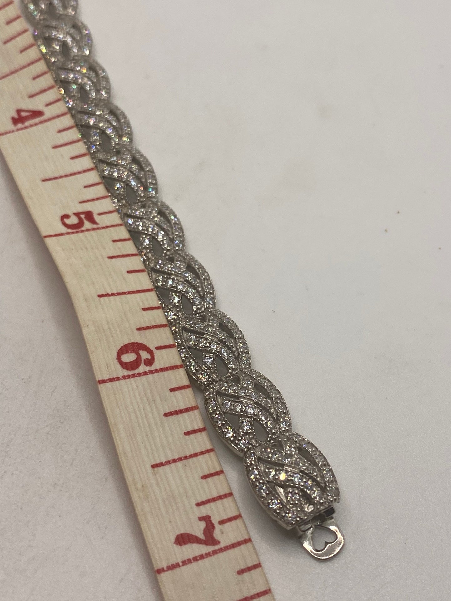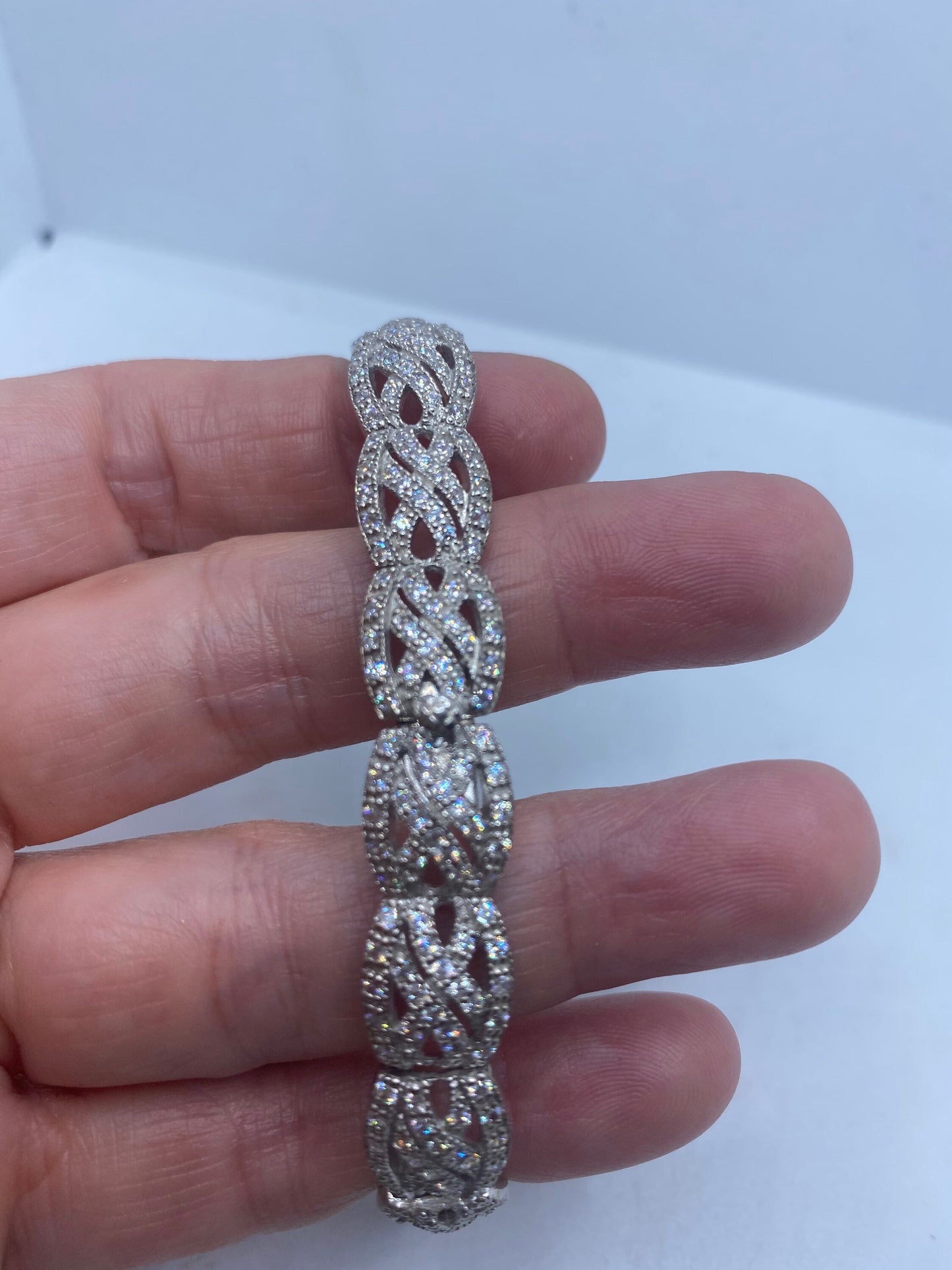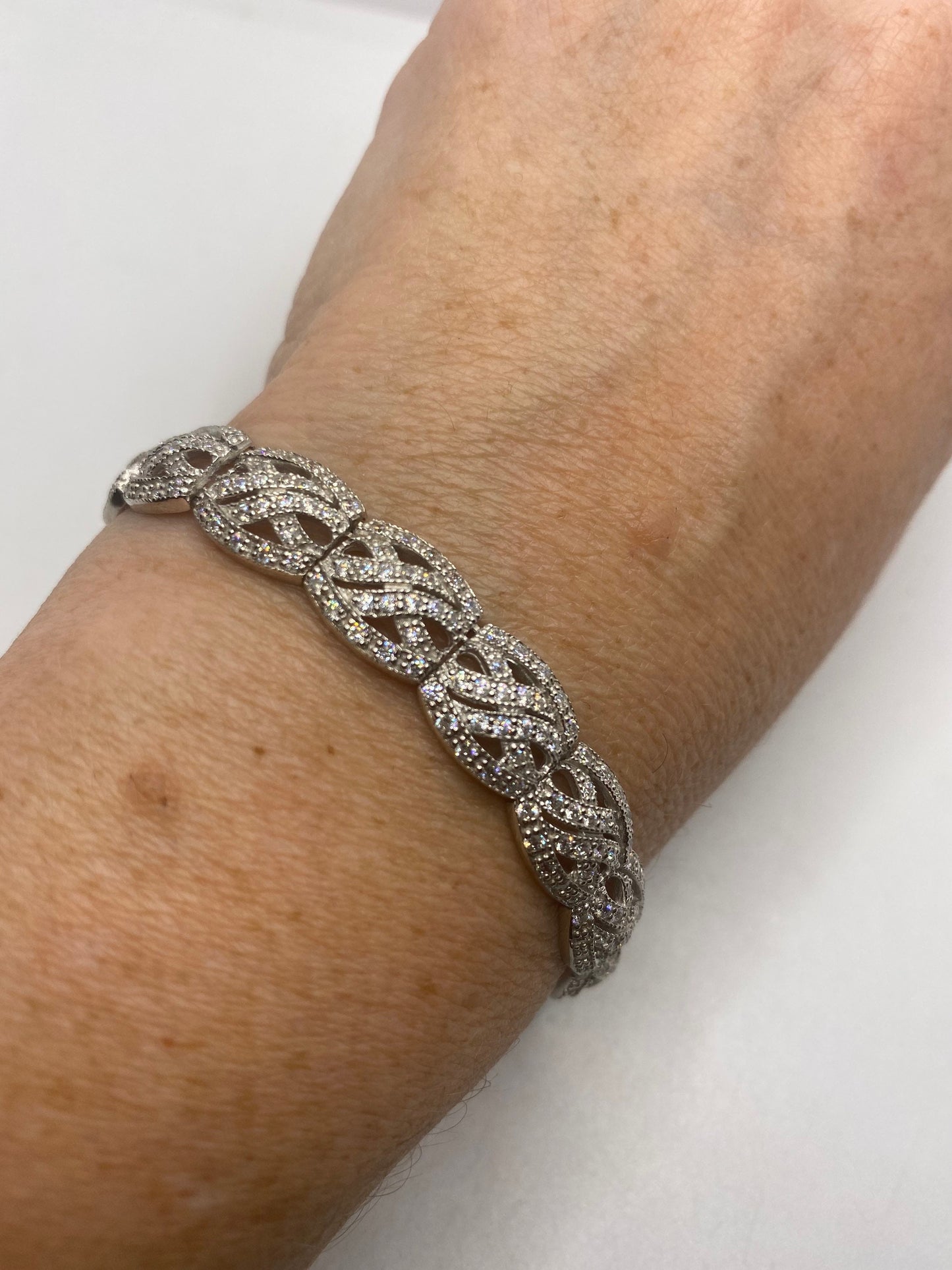 Vintage White Sapphires 925 Sterling Silver Deco Tennis Bracelet