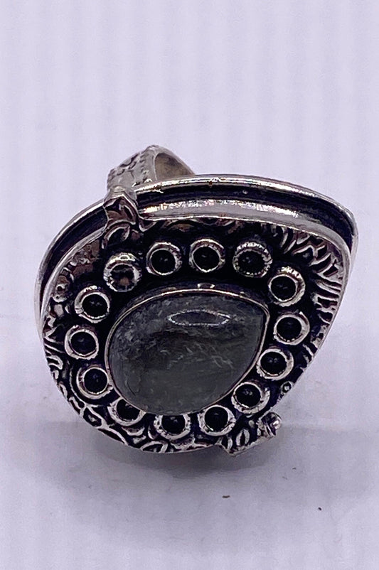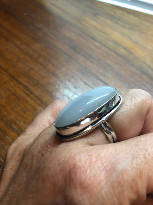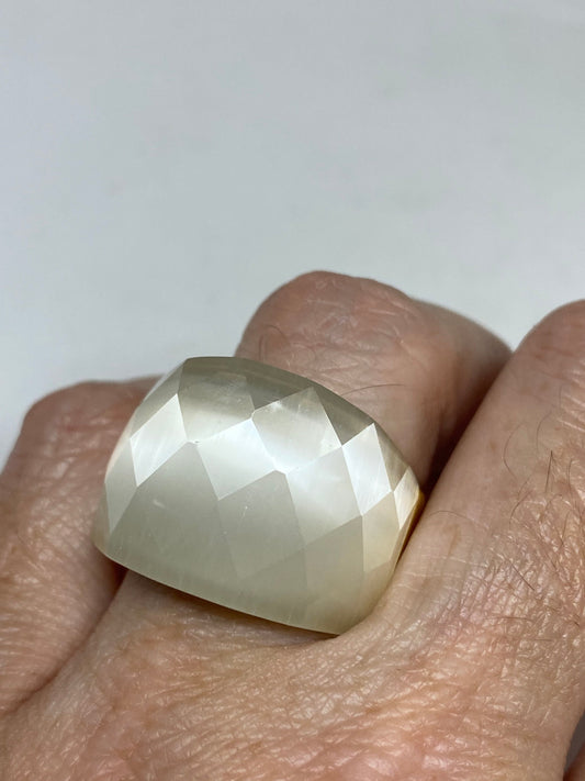 Vintage White Cats Eye Art Glass Ring About 1 Inch Long Knuckle Ring