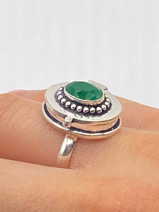 Vintage White Cats Eye Glass Mens Ring Stainless Steel