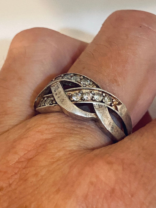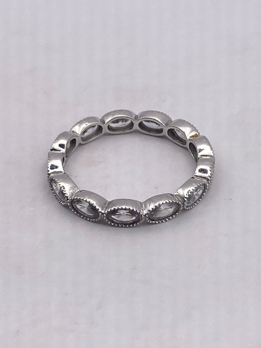 Vintage White Crystal 925 Sterling Silver Wedding Eternity Band Ring