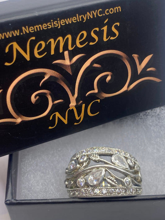 Vintage White Crystal Ring in 925 Sterling Silver