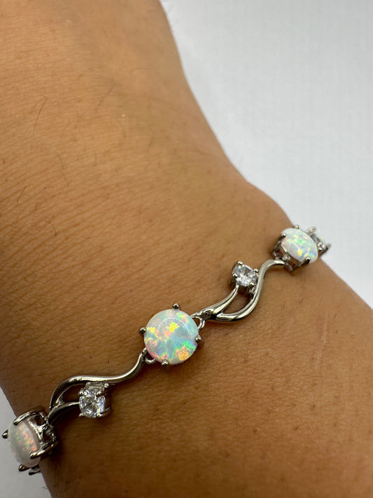 Vintage White Fire Opal Bracelet 925 Sterling Silver