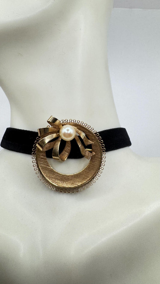 Vintage White cultured, pearl Flower Gold filled Brooch Pin