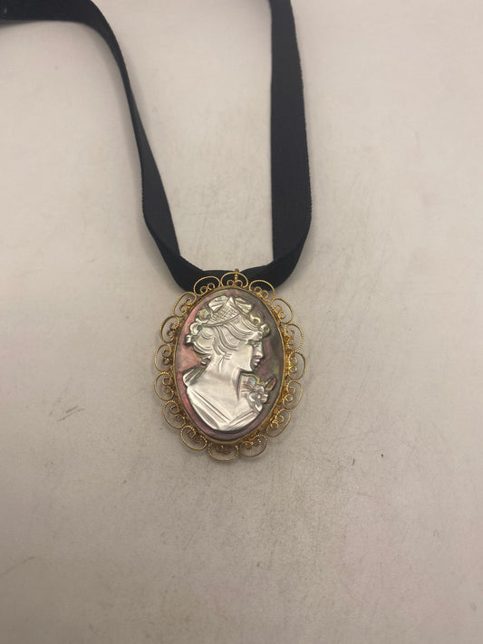 Vintage Abalone Cameo Yellow Gold Filled Necklace Pin Choker