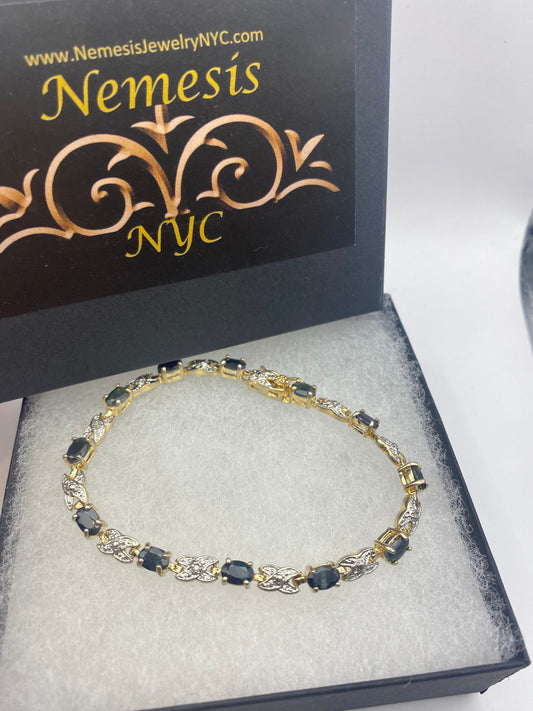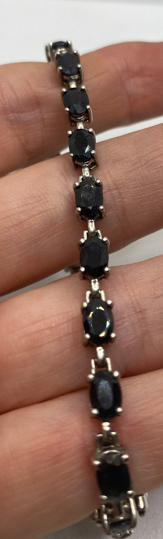 Vintage Blue Black Sapphires 925 Sterling Silver Bracelet