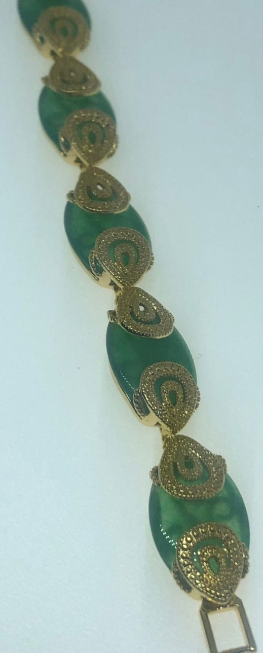 Vintage Gold Unisex Mens Green Jade buddha Bracelet