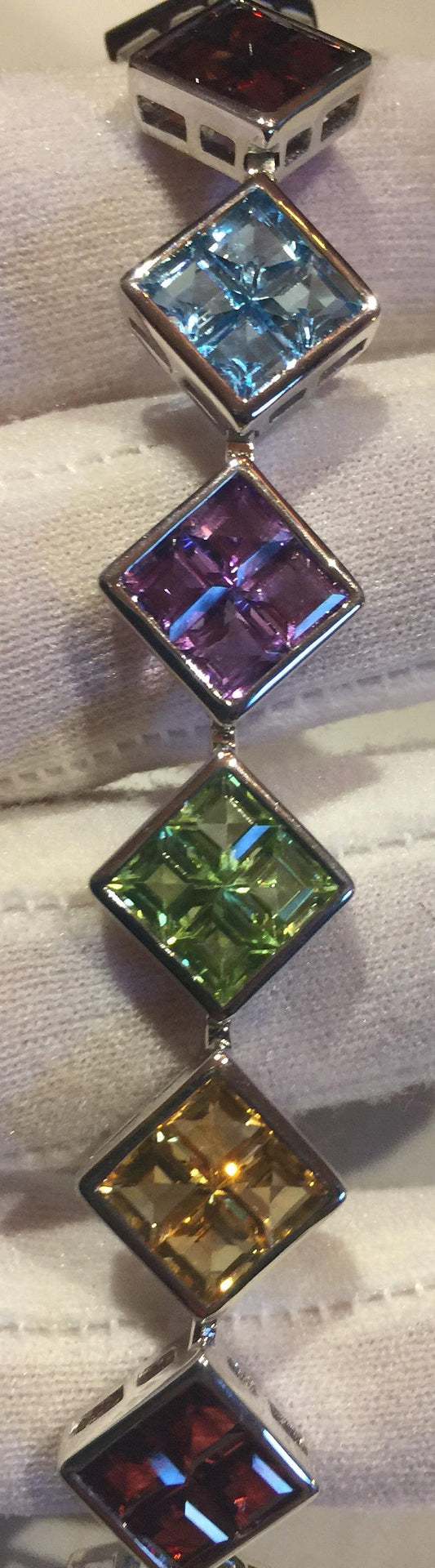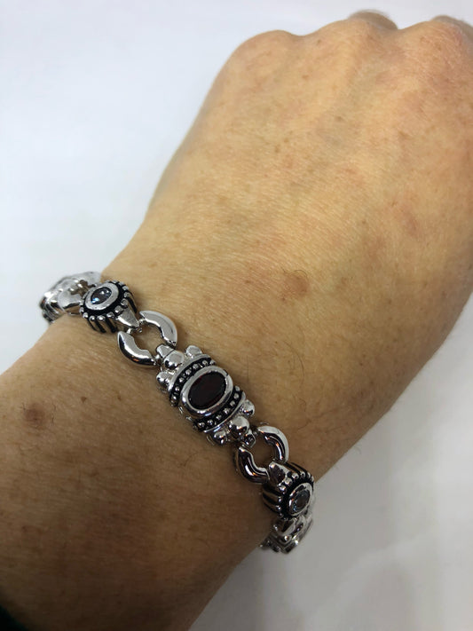 Vintage Garnet Citrine Blue Iolite Amethyst 925 Sterling Silver Tennis Bracelet
