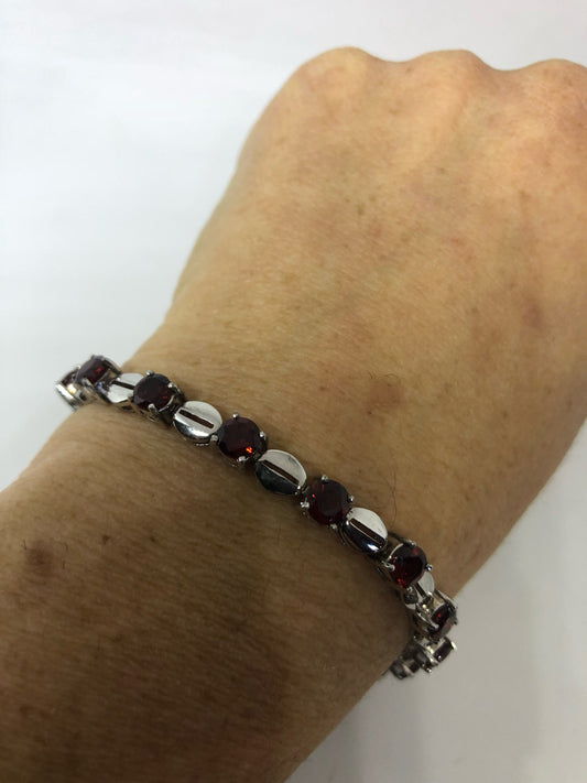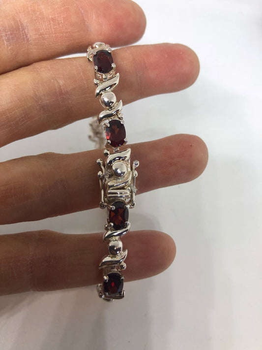 Vintage Bohemian Red Garnet Bracelet 925 Sterling Silver