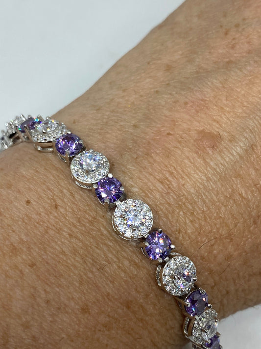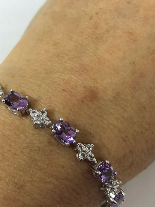 Vintage Purple Amethyst Tennis Bracelet in 925 Sterling Silver