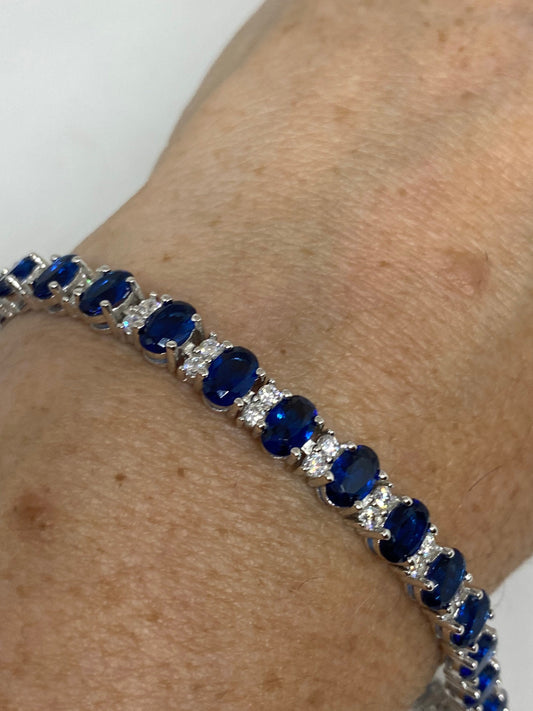 Vintage Blue Crystal Cubic Zirconia Bracelet Sterling Silver Tennis