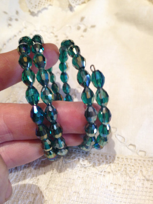 Vintage Styled Emerald toned Austrian Crystal/ Memory Wire Stretch Bracelet