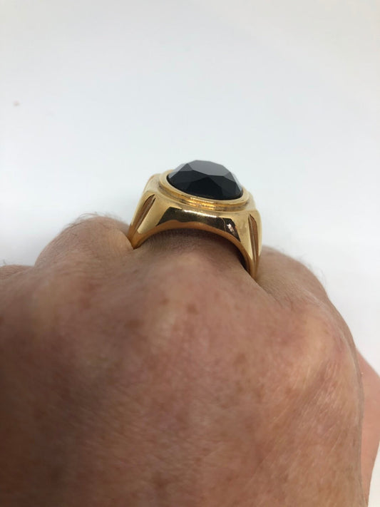 Vintage Gothic Gold Finished Stainless Steel Black Onyx Genuine Mens Ring