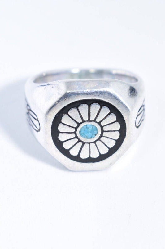 Vintage Native American Style Southwestern Turquoise Stone Inlay Mens Chrysanthemum Ring