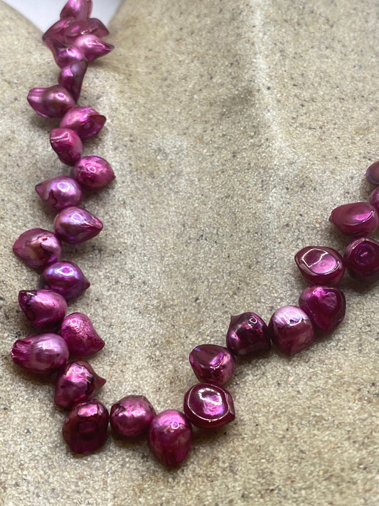 Vintage Magenta Pink Genuine Fresh Water Pearl Necklace 18 inch
