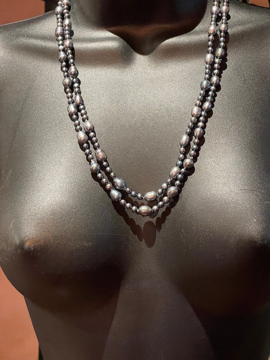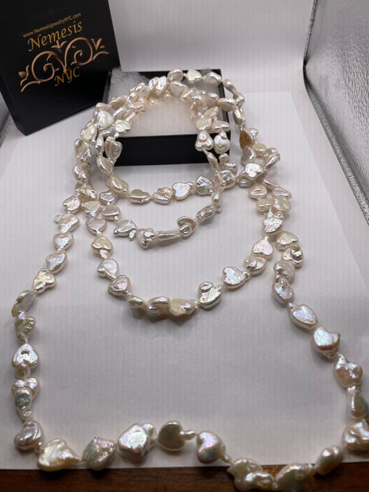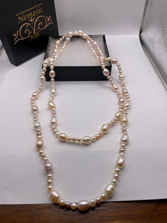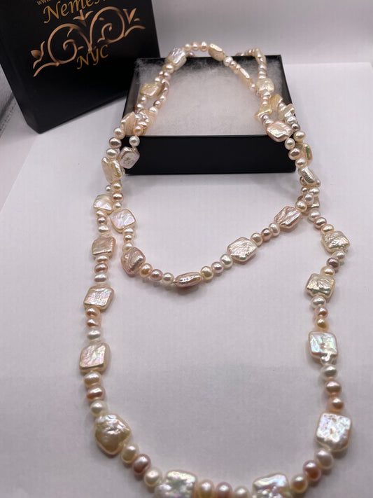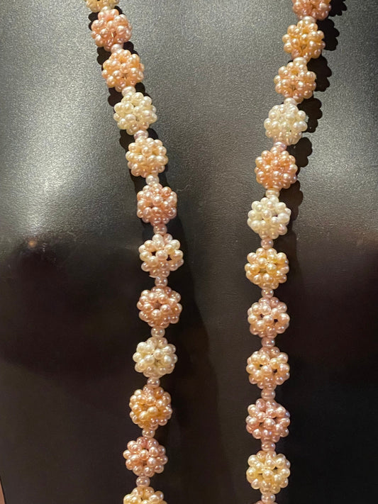 Vintage Cream Pearl and Carnelian 60 inch Necklace