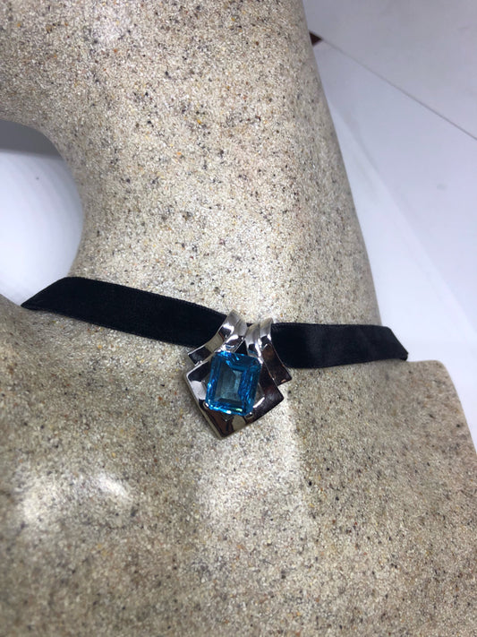 Vintage Blue Topaz Choker 925 Sterling Silver Necklace Pendant