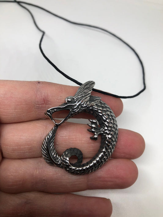 Vintage Handmade Silver Stainless Steel Gothic Celtic Dragon Pendant Necklace