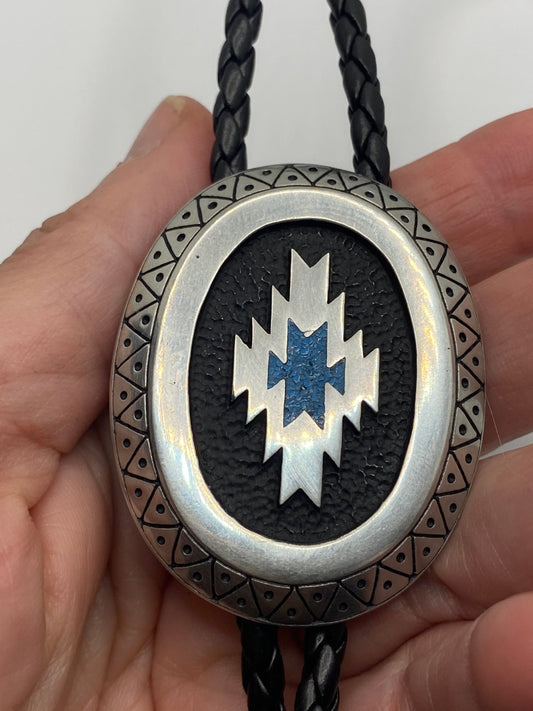 Vintage Native American Southwestern Inlay Turquoise Gemstone Pendant bolo Necklace