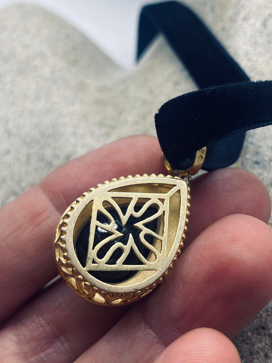 Vintage Black Onyx Choker Golden 925 Sterling Silver Pendant Necklace