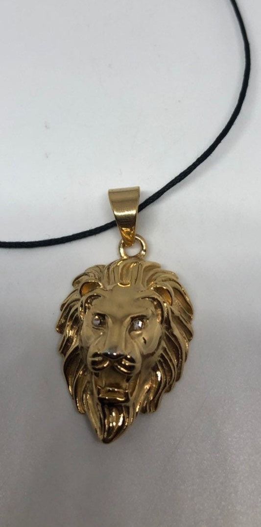 Vintage Golden Stainless Steel Lion Pendant Necklace
