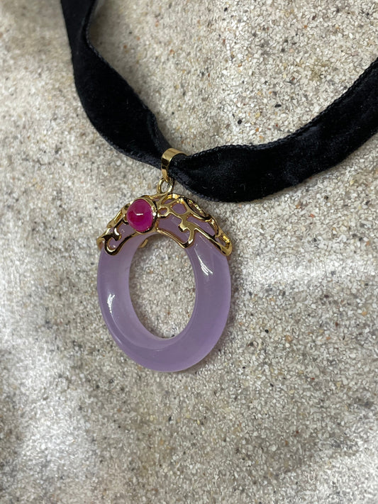 Vintage Lavender Jade Choker Silver Finish Necklace Pendant