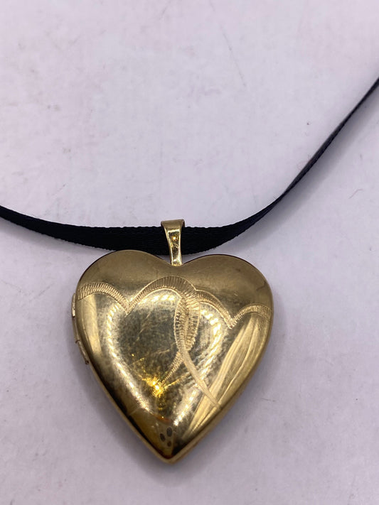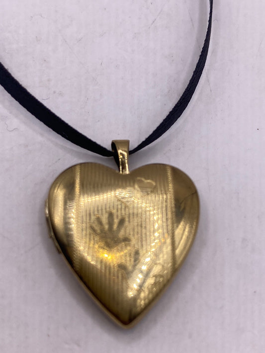 Vintage Gold Locket | Tiny Heart 9k Gold Filled Pendant Photo Memory Charm Engraved Tiny Hands Hearts | Choker Necklace