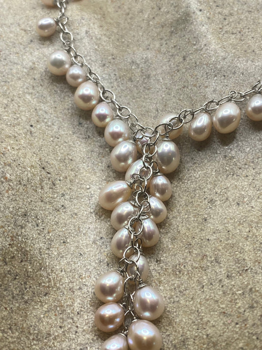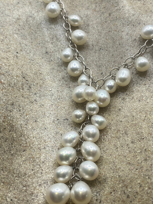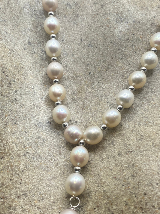 Vintage White Pearl 16 inch Y Necklace