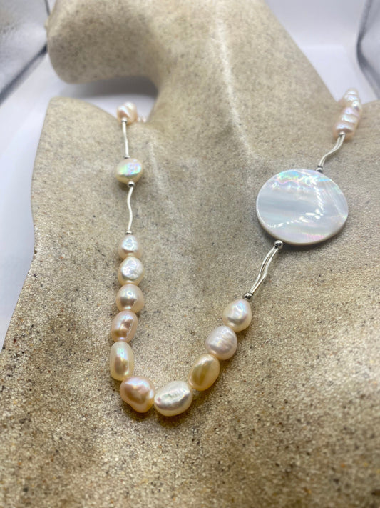 Vintage Cream Pink Grey Pearl 18 in Necklace