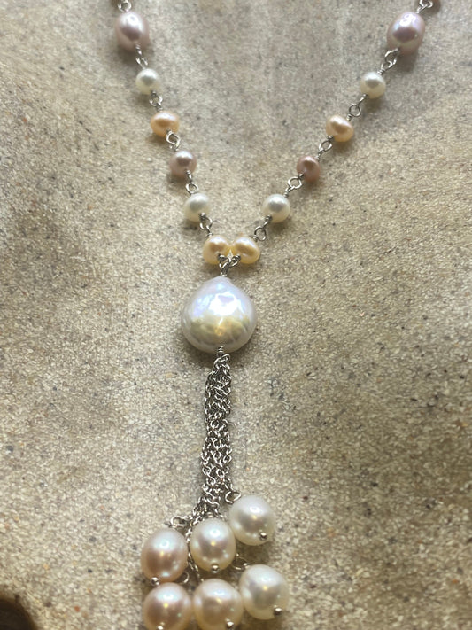 Vintage Pink Pearl 16- 18 inch Y Necklace