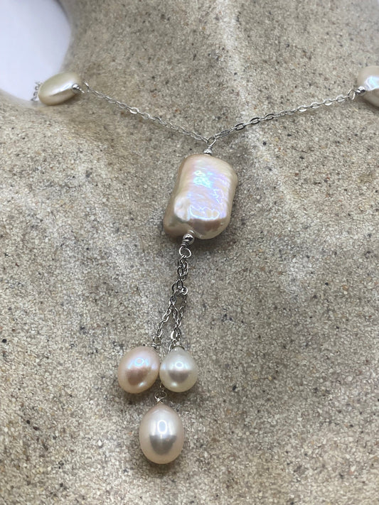 Vintage White Pearl 16- 18 inch Y Necklace