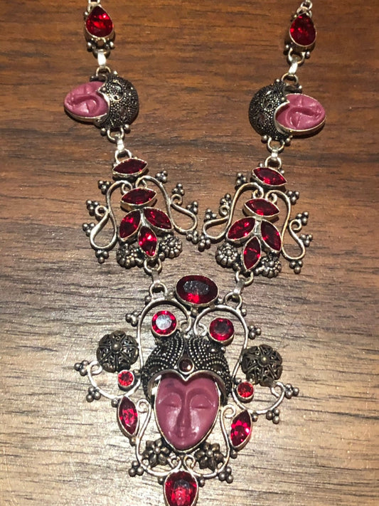 Red Handmade Gothic Styled Silver Finished Genuine Faceted Antique Volcanic Glass Choker Necklace