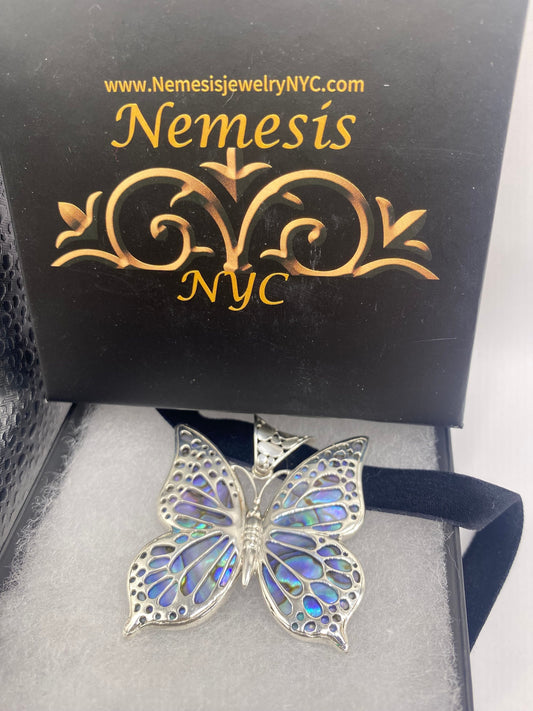 Vintage Butterfly 925 Sterling Silver Mother of Pearl Pendant Necklace
