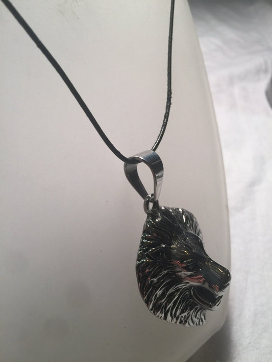 Vintage Handmade Silver Stainless Steel Gothic Lion Pendant Necklace