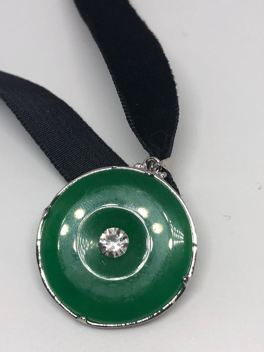Vintage Green Jade Choker Silver Finish Dragon Necklace Pendant