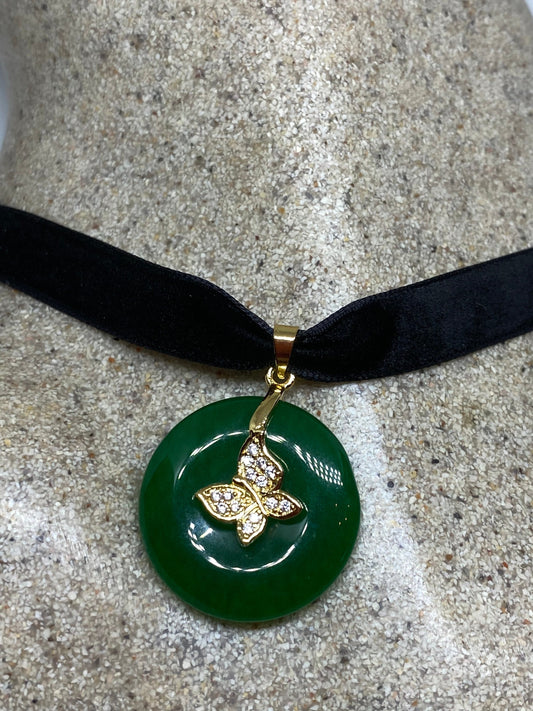 Vinate Green Jade Gold Finish Butterfy Necklace