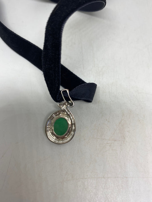 Vintage Jade 925 Sterling Silver Choker Pendant Necklace