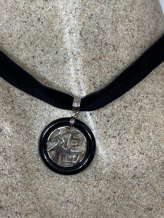 Vintage Black Onyx Choker 925 Sterling Silver Pendant Necklace