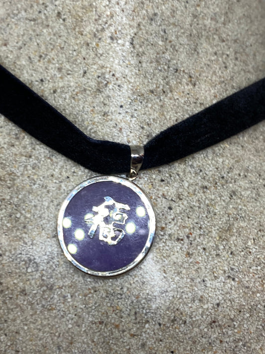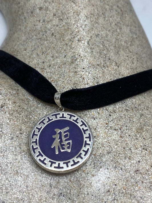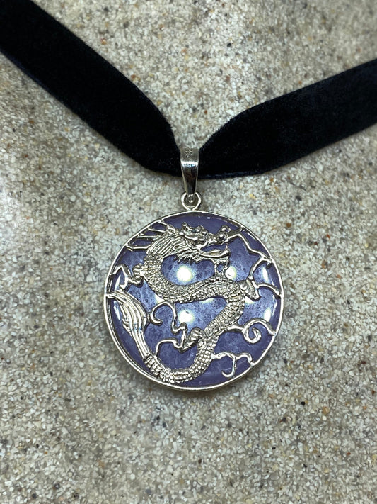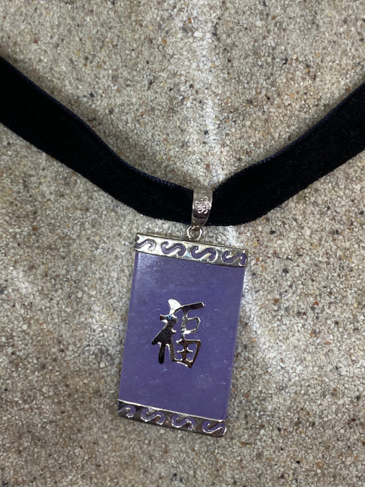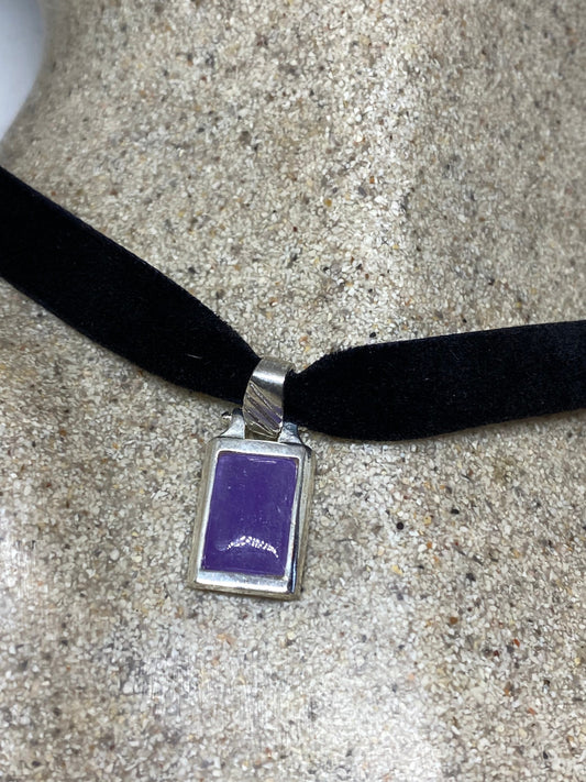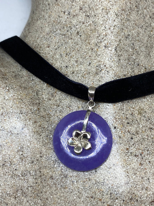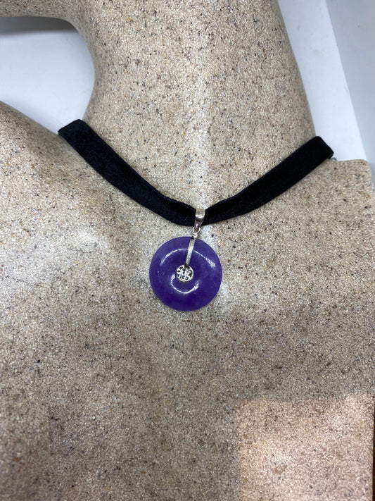 Vintage Purple Jade Choker 925 Sterling Silver Pendant Necklace