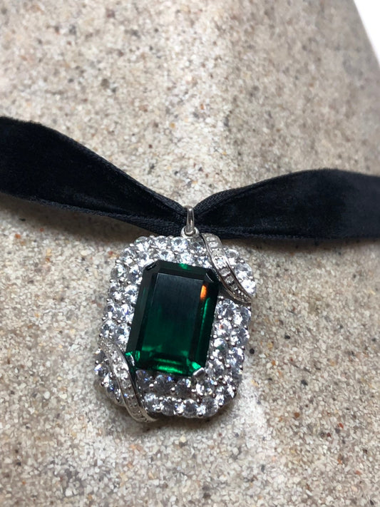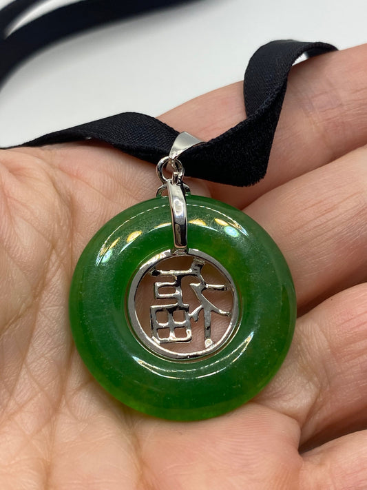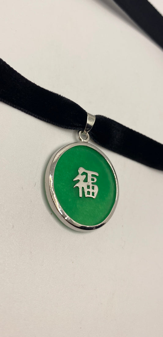 Vintage Green Jade Choker Silver Finish Necklace Pendant