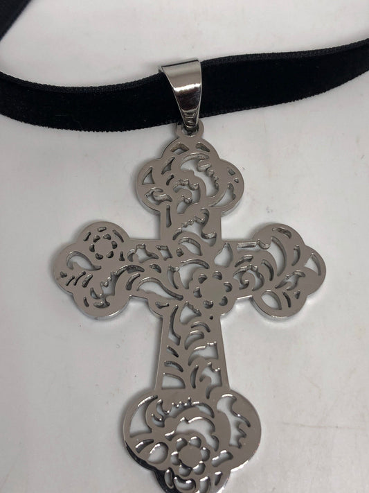 Large Handmade Vintage Silver Stainless Steel Cross Pendant Necklace