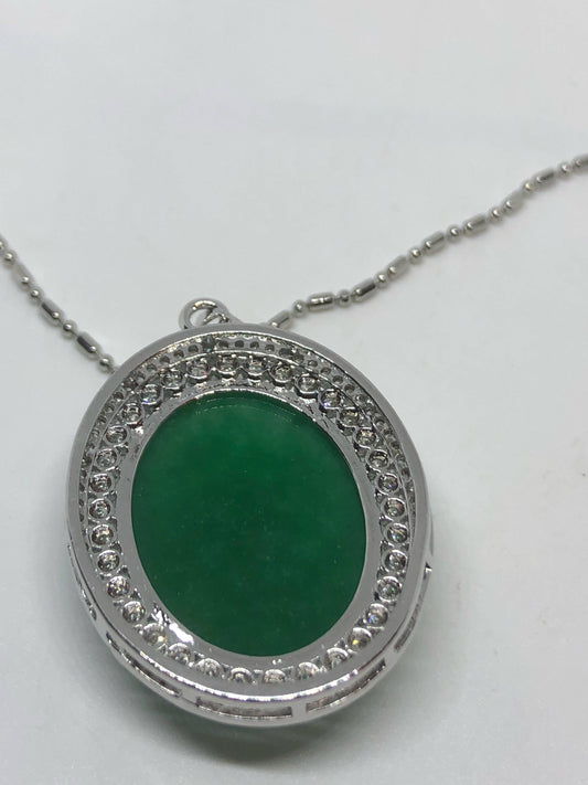 Vintage Green Jade Choker Silver Finish Necklace Pendant