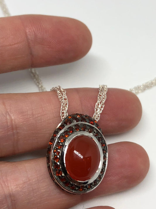Vintage Genuine Orange Fire Opal 925 Sterling Silver Pendant Necklace