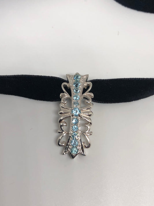 Vintage Genuine Blue Topaz Cross Choker Necklace 925 Sterling Silver Pendant