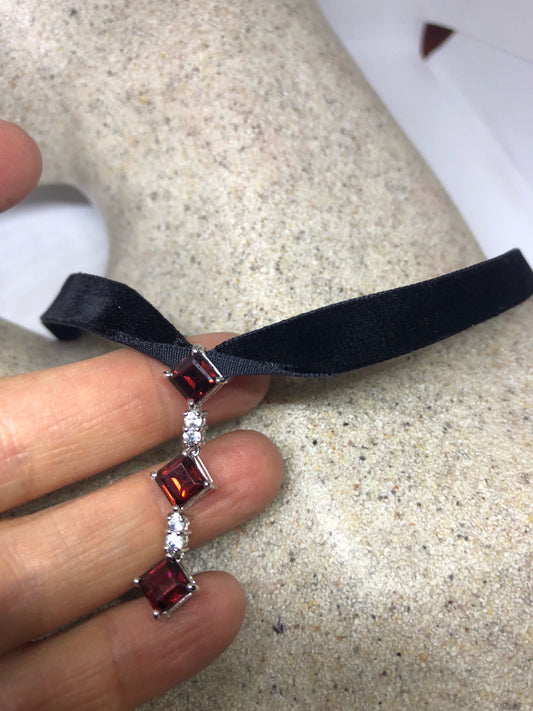 Vintage Handmade 925 Sterling Silver Genuine Garnet Antique Pendant Necklace