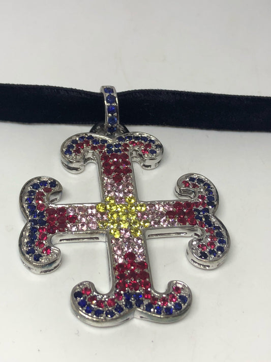 Handmade Sterling Silver Garnet Citrine Cross Pendant Necklace