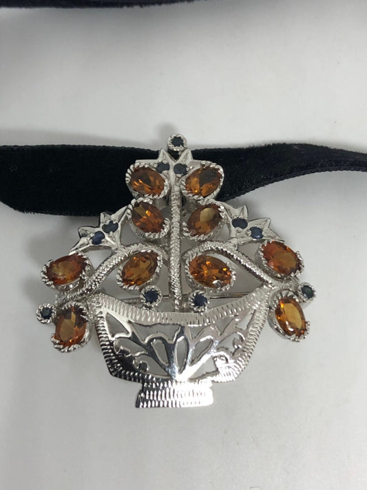 Vintage Handmade 925 Sterling Silver Genuine Citrine Antique pin Pendant Necklace