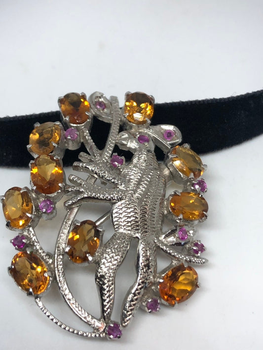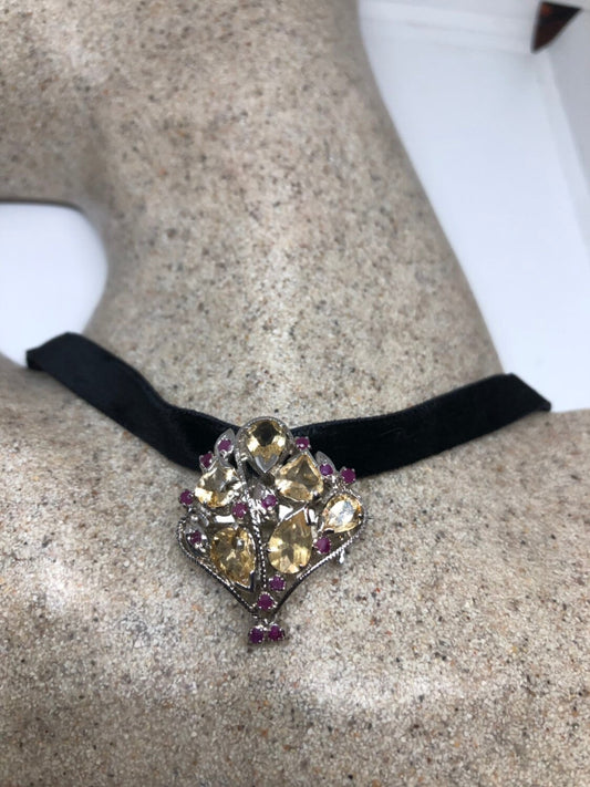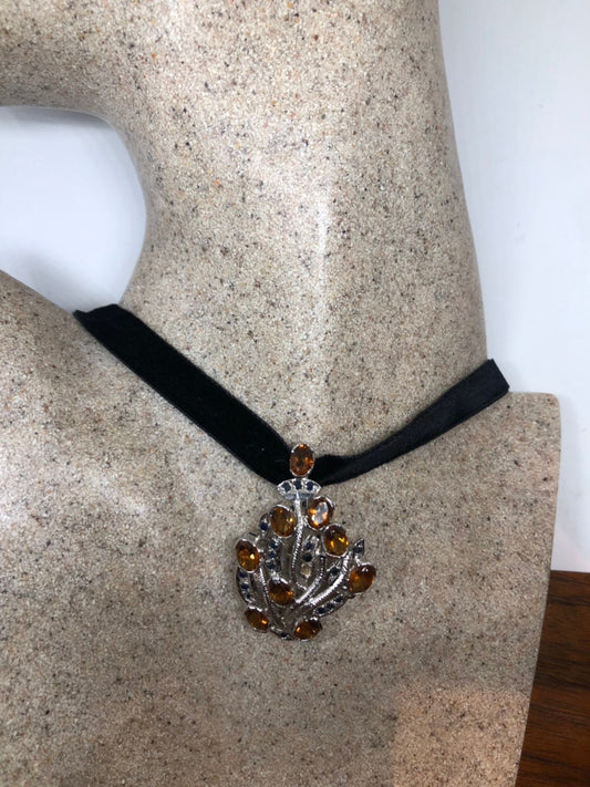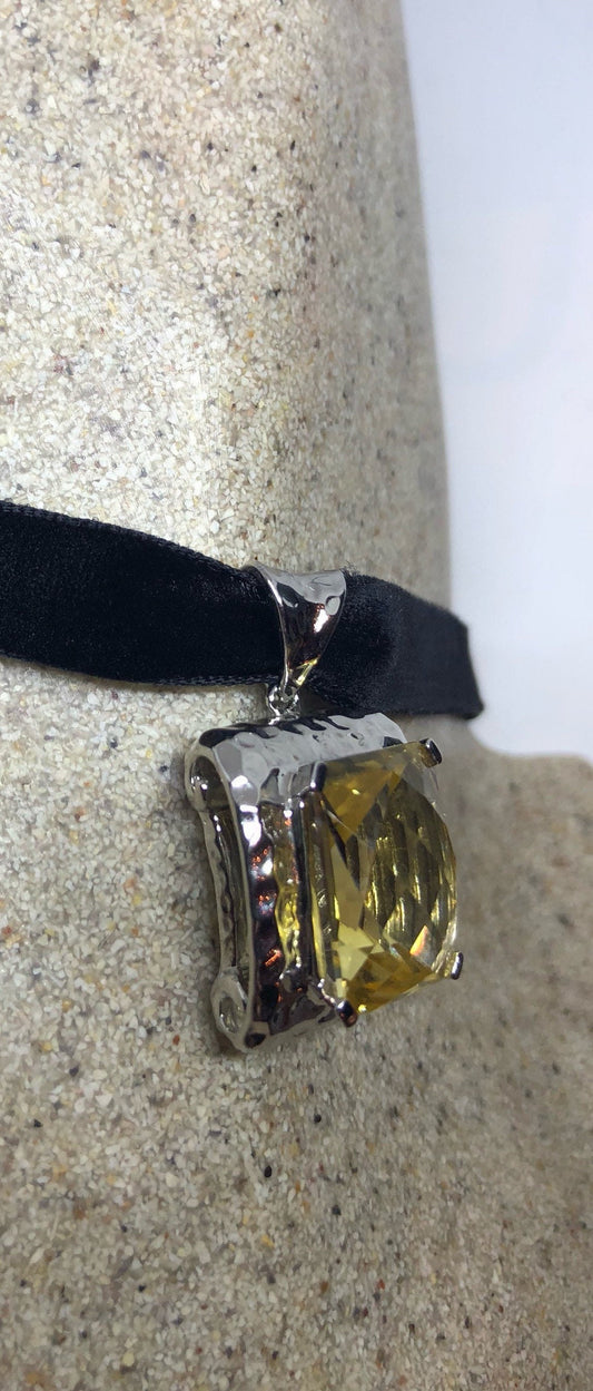 Vintage Golden Citrine Pendant 925 Sterling Silver Choker Necklace